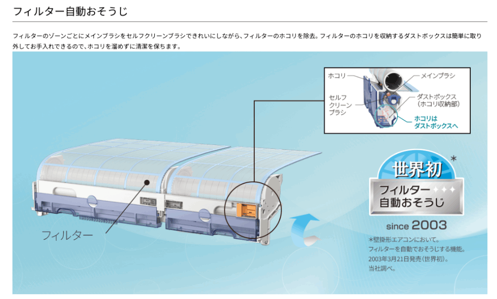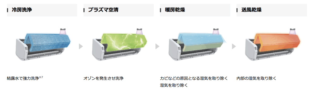うちでもダイキンを使っていますが、冷房運転後の内部クリーン運転(送風運転で内部を乾かし、最後に暖房運転し駄目押し)