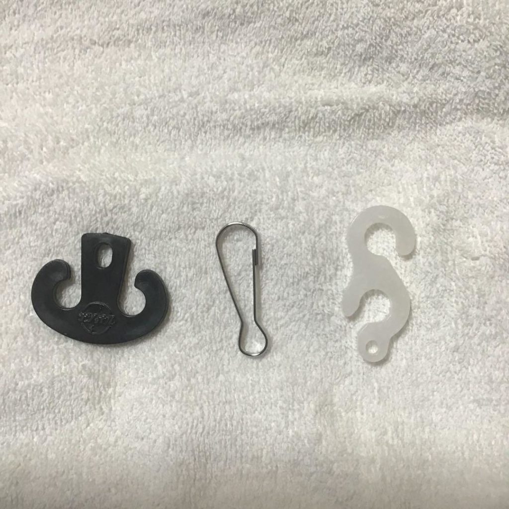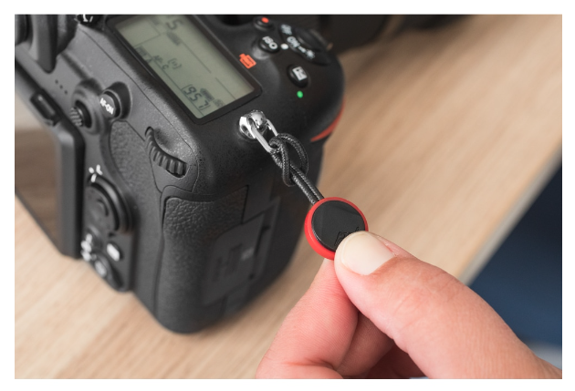 これを「コードフック」の穴に入れて、からカメラのストラップ取り付け部に紐部分を取り付ける