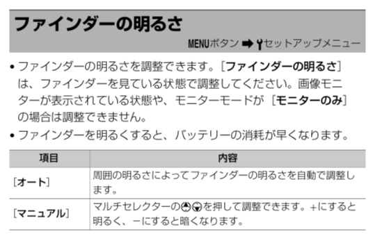 EVF明るさAUTOに慣れてしまうと、見た目気持ちが良いので戻れないかも