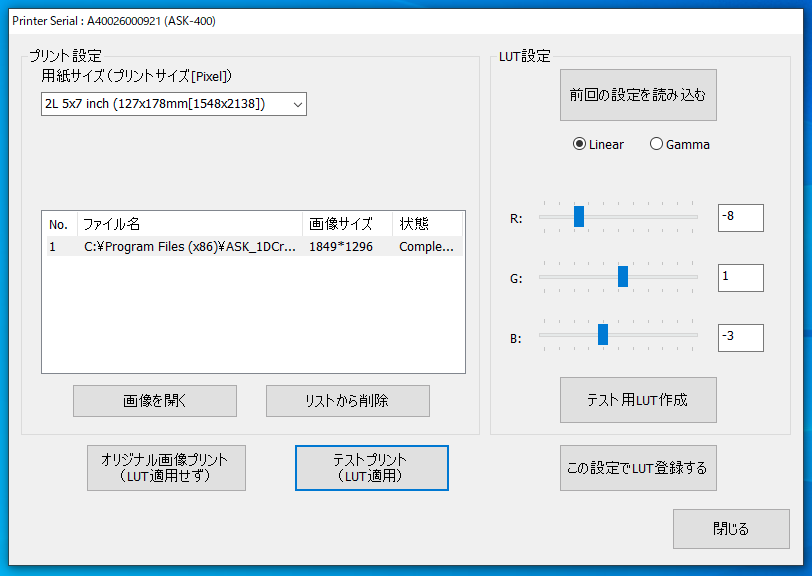 ASK-400が故障したので、代替え機を送ってもらったのですが、ヘッドが違うと色が違うようで、個別に上の色補正で調整が必要です